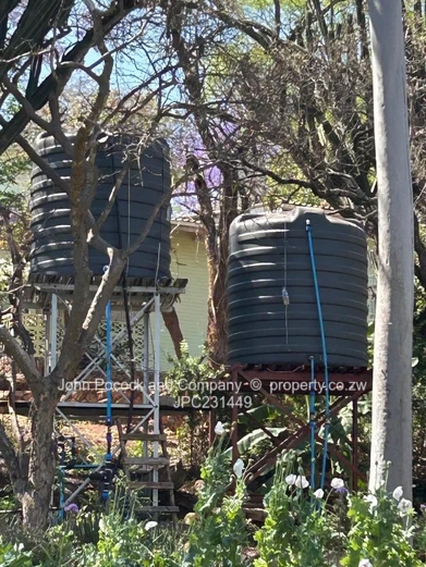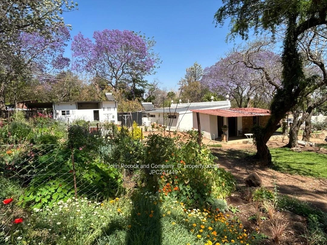 Main house, self contained cottage, lush gardens (with a water feature!!!) 3 garages, solar, water tanks, staff accommodation and borehole.