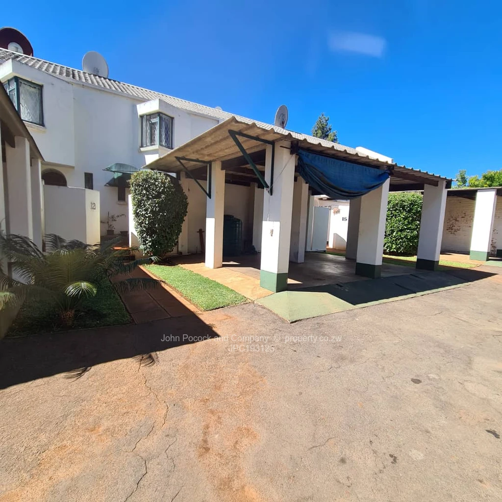 We have pleasure in introducing this very neat 2 bedroom, duplex townhouse located in Hume Park, set in a desirable gated complex. This unit is neat, clean and comfortable. On the first level is 2 bedrooms, and one with overhead fan, both bedrooms have extensive built in wardrobes. One of the bedrooms is en suite and has a balcony, the family bathroom is also upstairs. Ground floor has a guest water closet, an attractive, appealing open plan fitted kitchen , dining area and lounge. The lounge leads onto an enclosed veranda. The complex has a borehole.